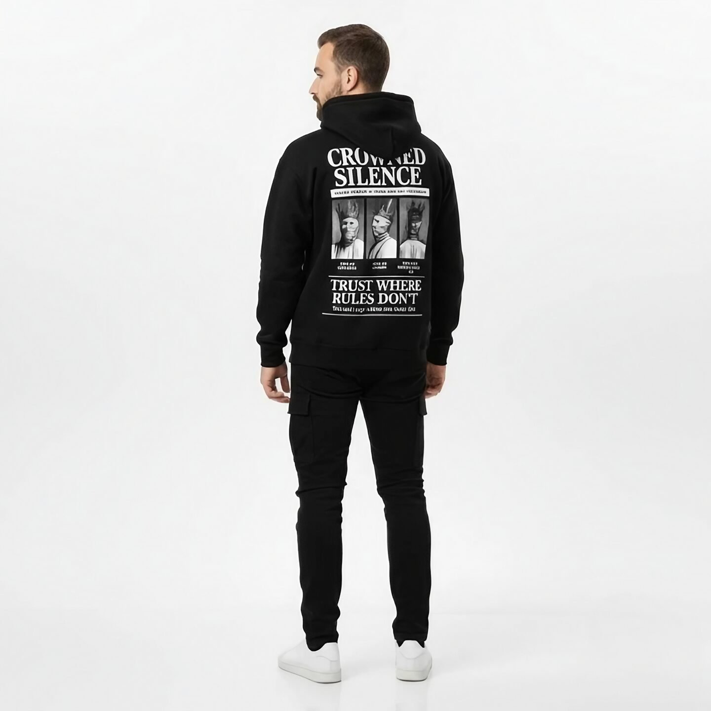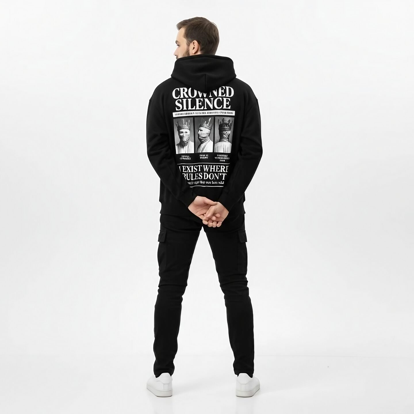 The RICHERK Crowned Silence Hoodie is built for legends, kings, and visionaries who lead without noise. Featuring a striking back print that declares “I Exist Where Rules Don’t”, it represents those who rise above conformity — the ones who build empires quietly and let their presence command respect.